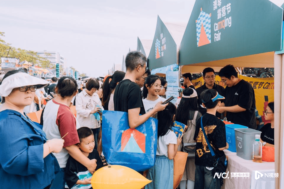 刚体验完的居民陈先生说:“平时在家孩子也会玩垃圾分类的游戏,今天这个摊位的设计特别贴近生活,游戏场景都是露营中常见的,比如‘奶茶喝完再分类’这样的细节,一下子就记住了。”