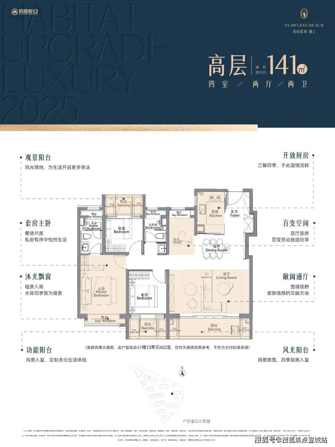 2、延伸空间拉满!主卧套房飘窗+步入式衣帽间+独立卫浴拥有2个飘窗,尊崇感与实用性拉满!三阳台+花池+4飘窗结构,有效延伸空间,实际使用空间更奢阔!