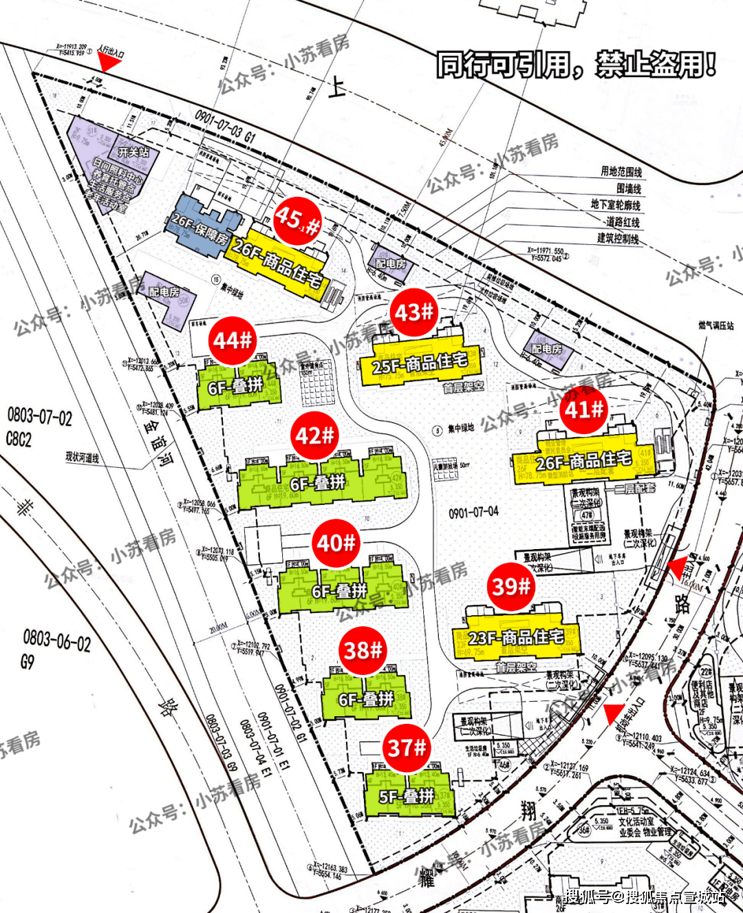同时从设计方案也可以看出,该地块地上无车位,全人车分流,社区内部规划有室外健身点、儿童游戏场以及部分架空层!