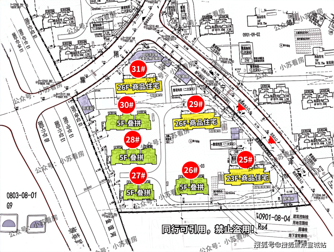该地块同样也没有地上车位,全人车分流,社区内部规划有室外健身点、儿童游戏场以及部分架空层!