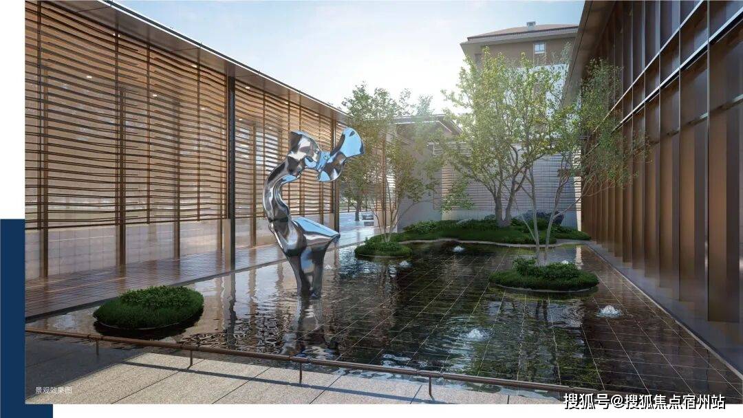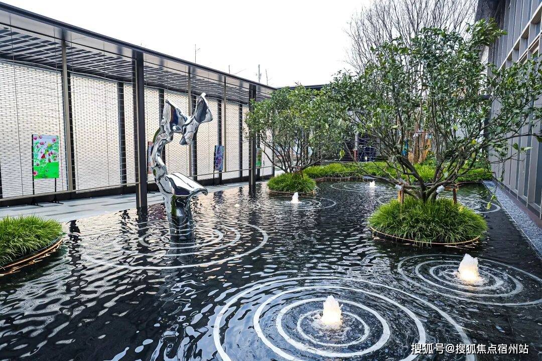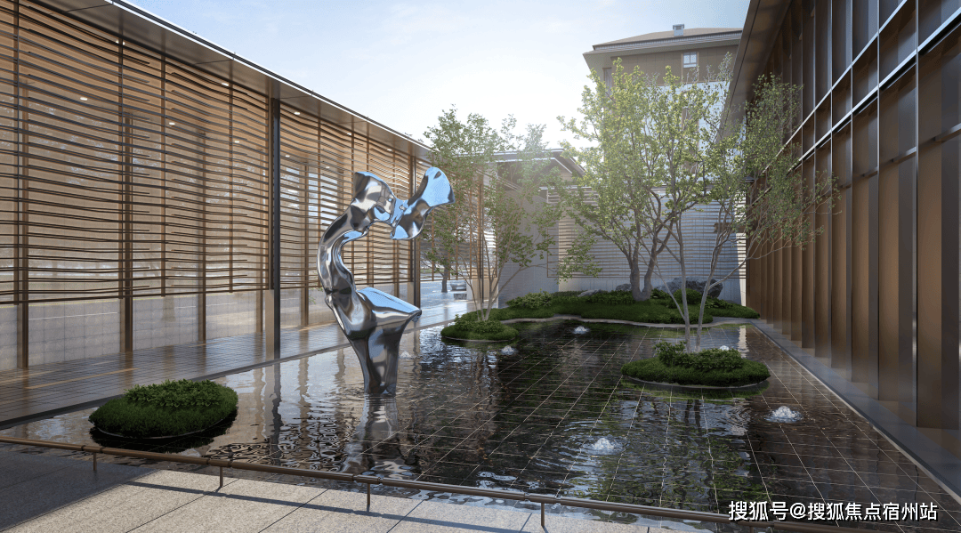 水景雕塑《晓风艺墅》具有至关重要的地位,金属的光泽与水光的灵动交相辉映,成为空间中的点睛之笔。