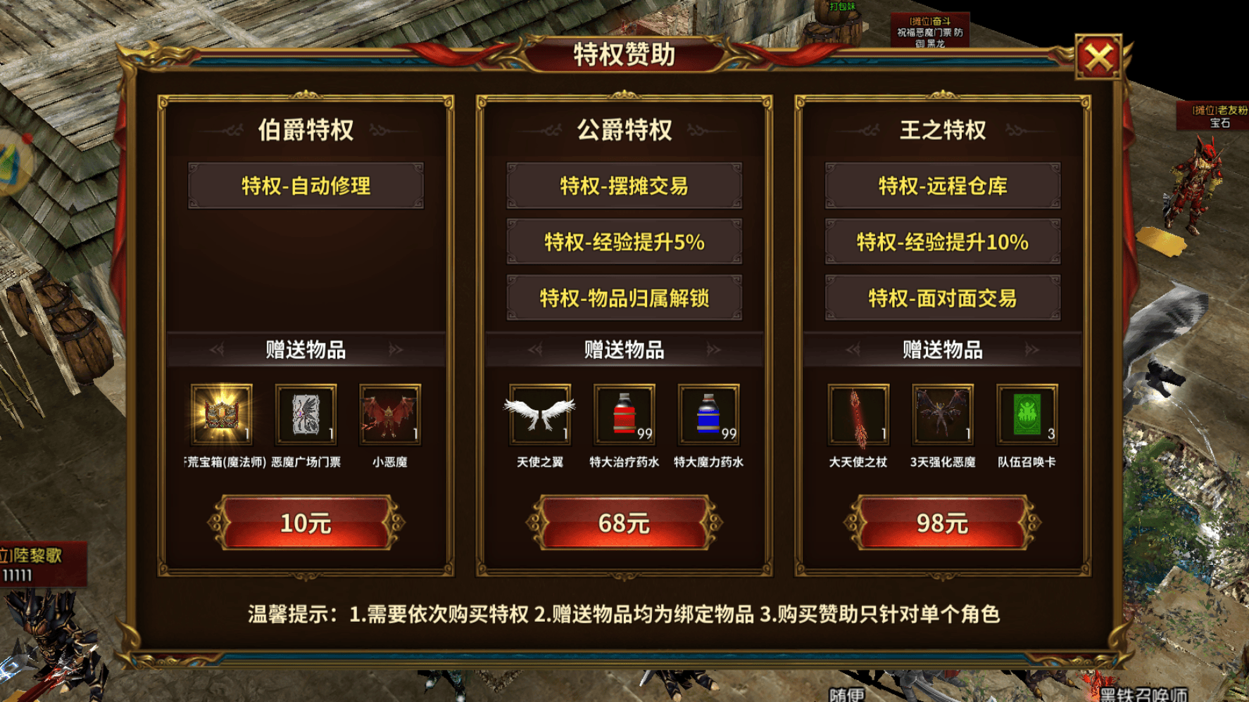 2. 不浪费资源在非刚需道具上:金币优先用于装备强化、修理和材料购买,避免购买装饰道具;绑定元宝重点购买双倍经验卷轴、疗伤药等刚需道具,不盲目抽卡。