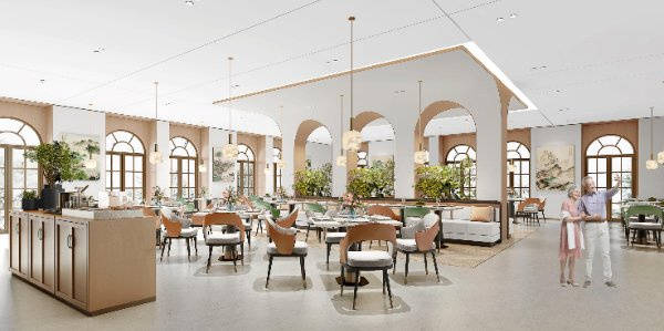 社区美学中心更是点睛之笔,中古厨房复刻旧时光烟火气,长者可跟着厨师学习家常菜做法,在翻炒间重温家庭温暖;茶室兼直播间里,煮茶品茗时可同步观看养生直播、文艺展演,让休闲时光更具层次感;供销社(特产屋)摆满各地特色商品,日常所需一站式购齐,唤醒长辈的怀旧记忆。此外,健身房、瑜伽室、桌球室、声乐室、KTV、影音室等空间错落分布,有氧运动、棋牌对弈、高歌欢唱、光影盛宴,每一种爱好都能找到归属,超市、生鲜区、美发店等生活配套,让日常起居便捷无忧。