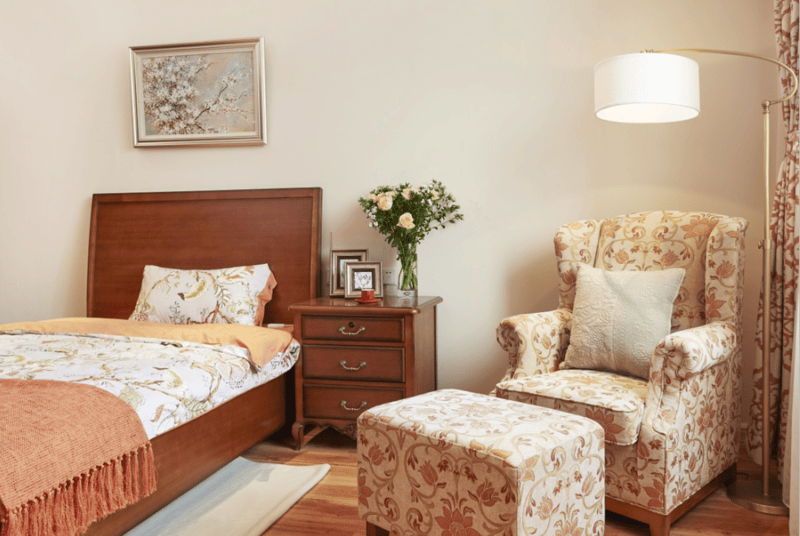 知护国际颐养中心顺义项目(旺泉街道家合养老照料中心),以“家”为核心主题,打造独栋院落式养老空间,打破传统机构的冰冷感,让长辈在熟悉的院落氛围中感受家的温暖。5000多㎡的占地空间里,分层规划功能区域,1层为独立医疗区域,2-5层为居住区,布局科学合理,既保障医疗服务的便捷性,又确保居住区域的安静私密。从装修风格到软装布局、设施设备,“家”的元素贯穿每一个细节,暖色调墙面、实木家具、温馨装饰,搭配庭院内的绿植花草,让长辈入住即有归属感,真正实现“养老如居家”。