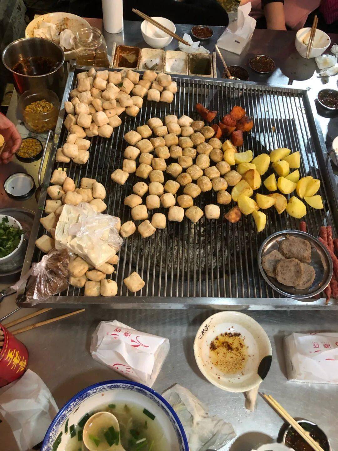 无需刻意规划路线,在翰林街、临安路一带随意漫步即可。会看到许多小吃店门口支着炭火烤架,上面整齐地排列着方形的小豆腐块,这就是著名的建水烧豆腐。通常食客围坐烤架旁,每吃一个,店主便投一粒玉米计数。豆腐外皮焦脆,内里呈蜂窝状,可蘸干湿两种调料食用。